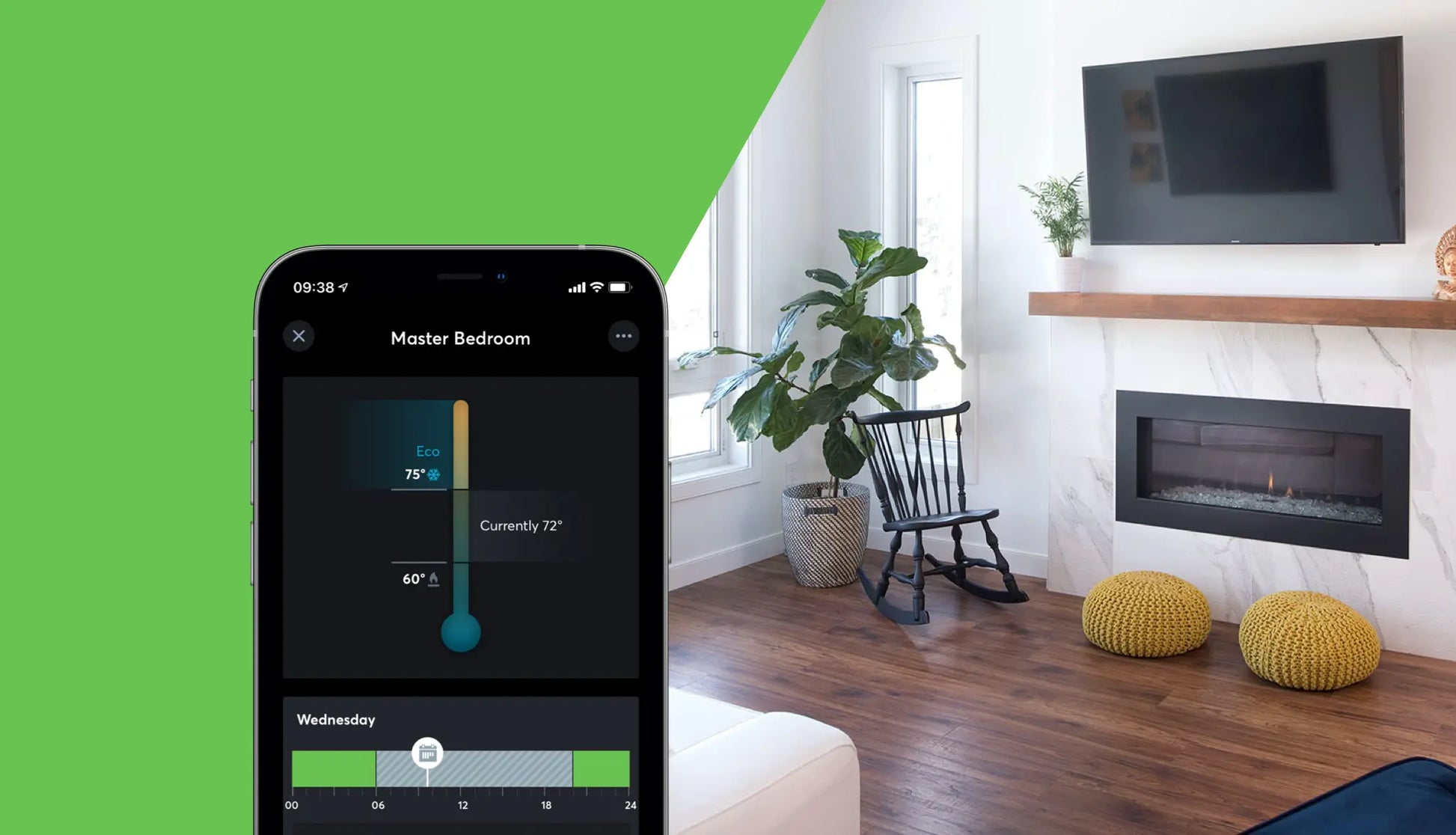 S pametnim nadzorom lahko enostavno nastavite želeno temperaturo prek aplikacije ali glasu. Ko vas ni doma, se poraba energije samodejno zmanjša, ob prihodu pa se prostor ogreje ali ohladi na idealno temperaturo.